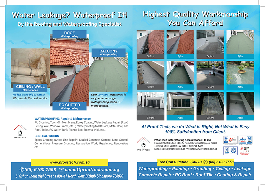 Proof-tech Waterproofing & Maintenance Pte Ltd has more than 15 years of experience in waterproofing and building maintenance works, Proof-Tech Waterproofing & Maintenance consists of more than 100 professional workers who are not only professional but sincere and experts in all areas of their work. Proof-Tech Waterproofing & Maintenance pride in work to make sure, what the clients need are met.